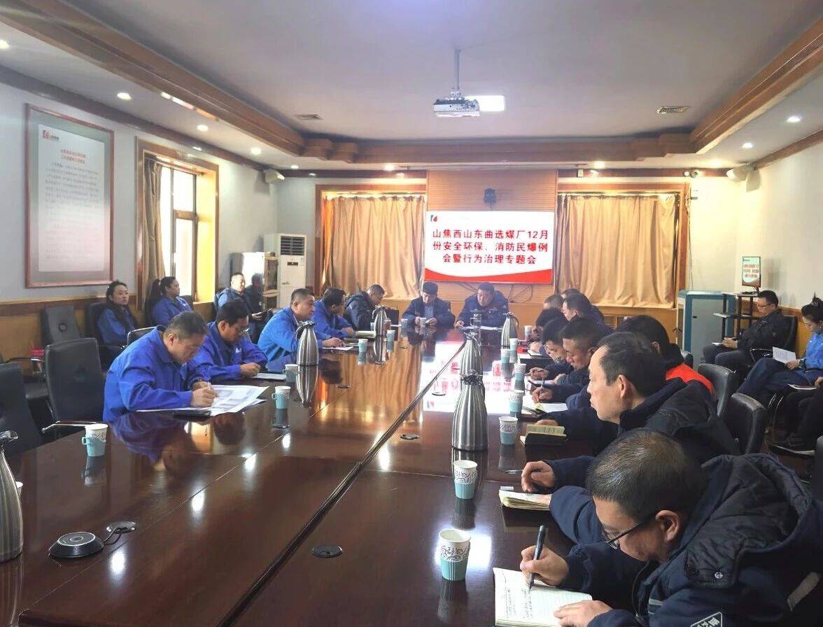 11月26日,山焦西山东曲选煤厂召开十二月份安全环保、消防民爆暨行为治理专题会议。该厂厂领导、副总工程师、厂基层副职及以上管理人员、安全环保健康部全体人员参加。